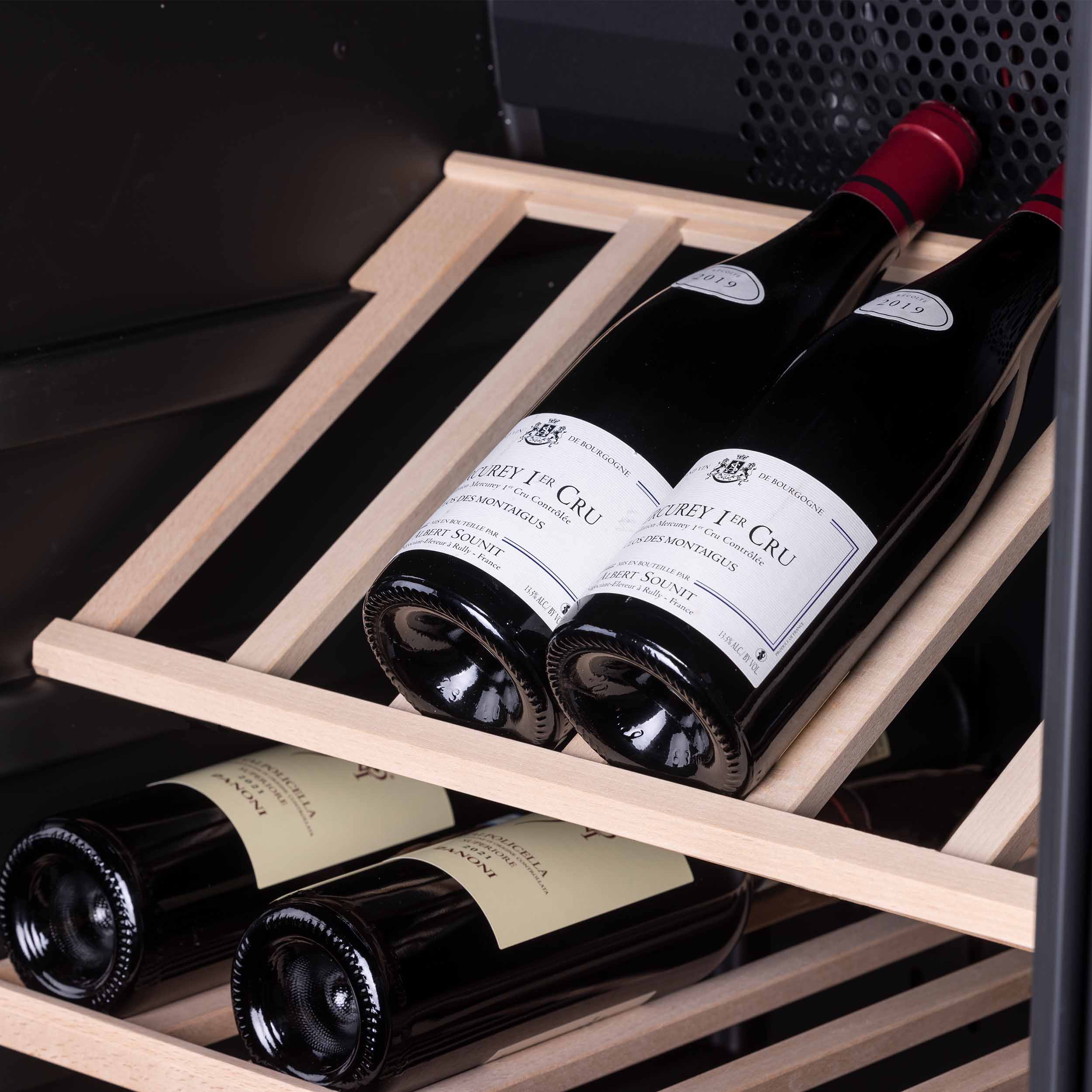 Hyllylle voi laittaa myös Bordeaux, Burgundia, Alsace ja Samppanjaa