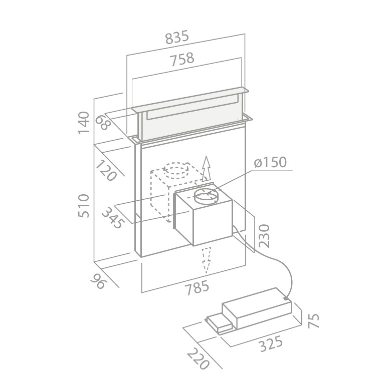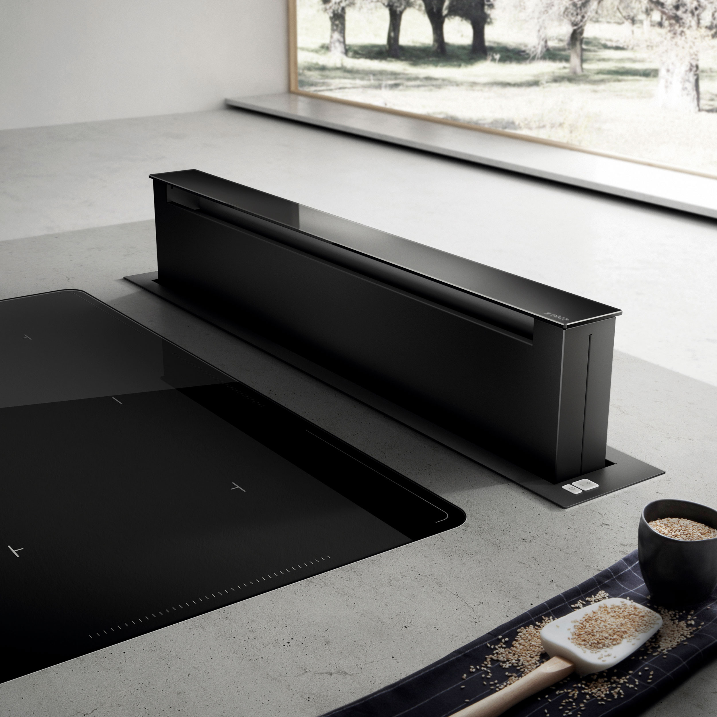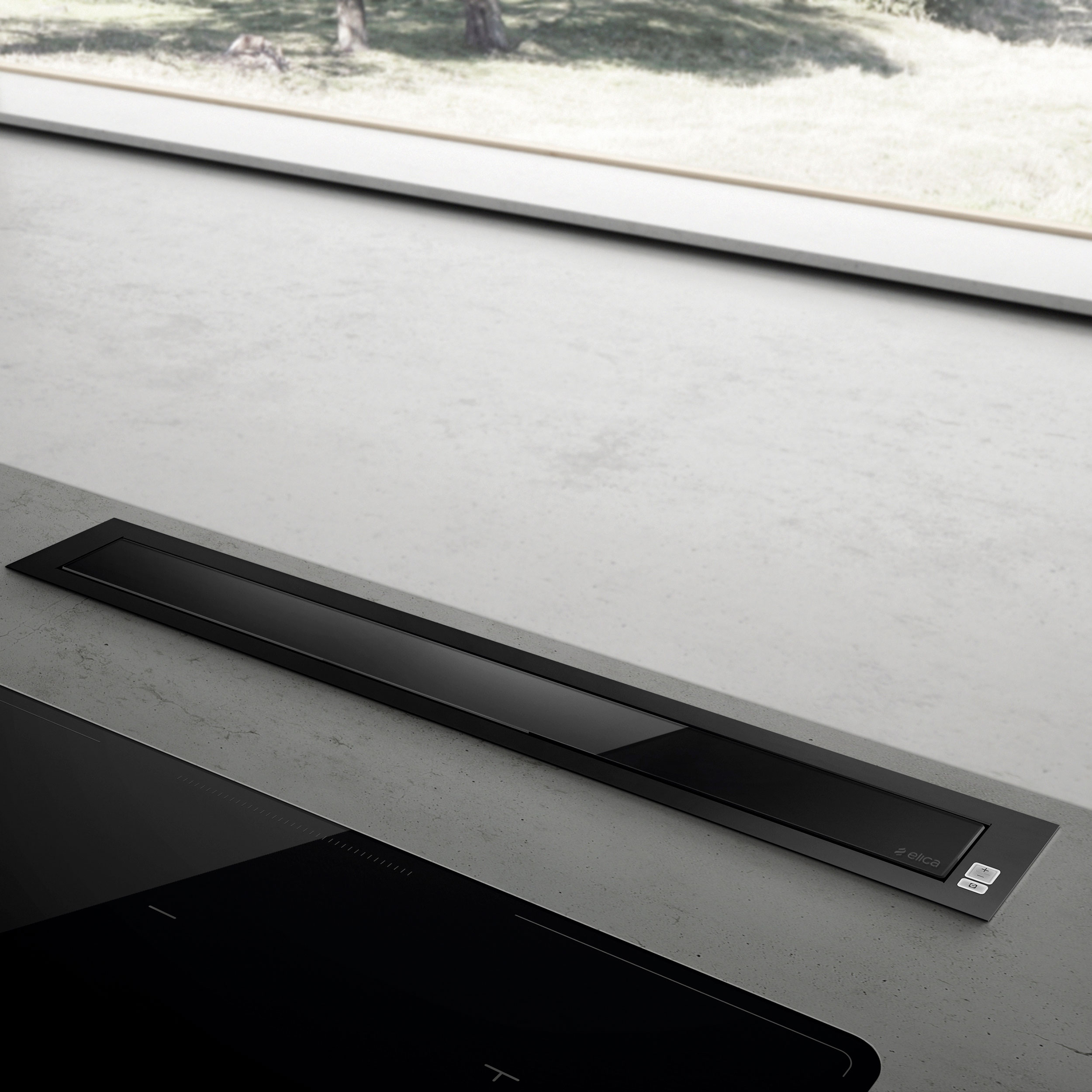 Pöytätasoon integroitava liesituuletin, jossa on sisäänrakennettu moottori - Musta - Leveys 835 mm - Energialuokka A