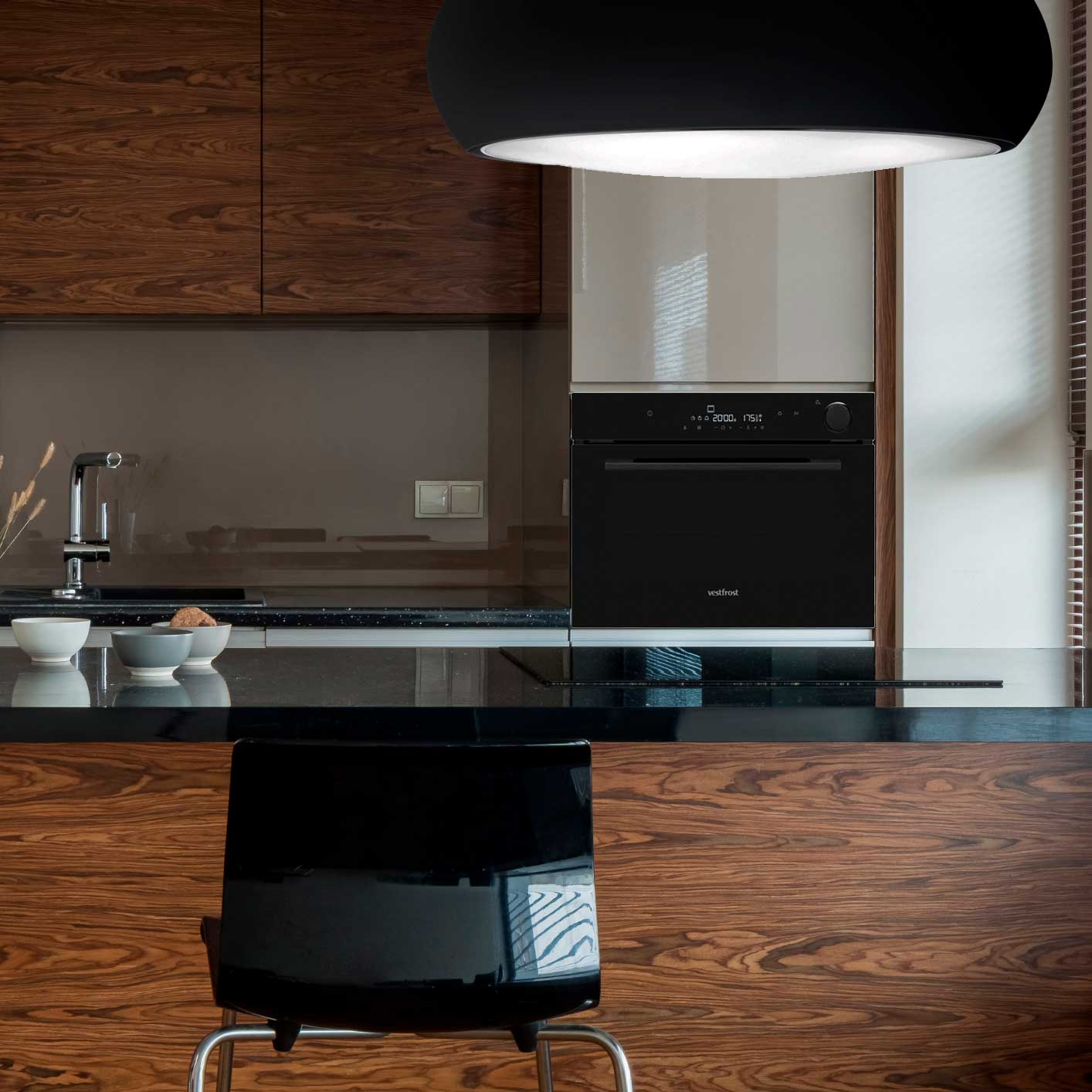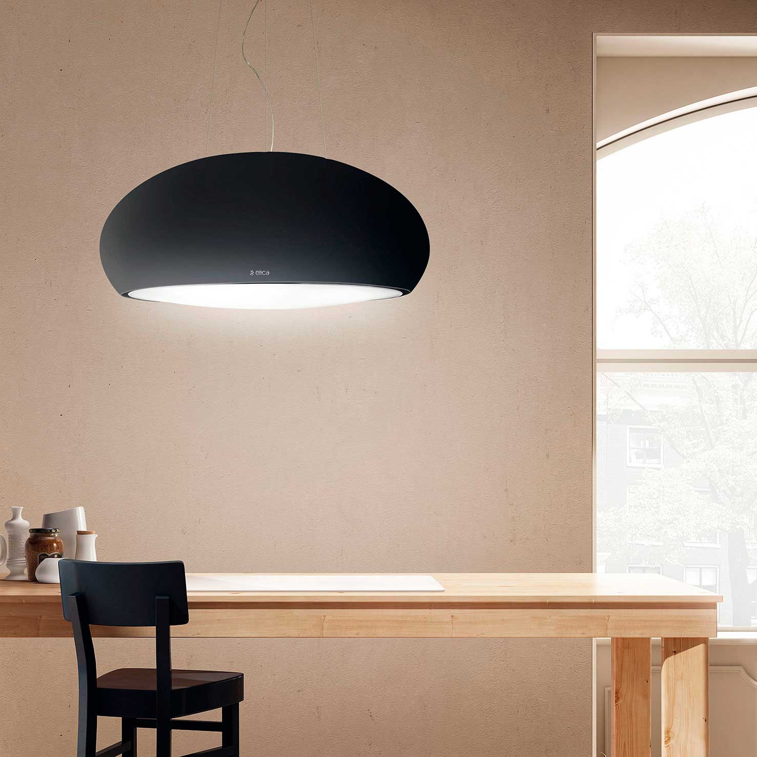 Wirehængt emhætte i sort design