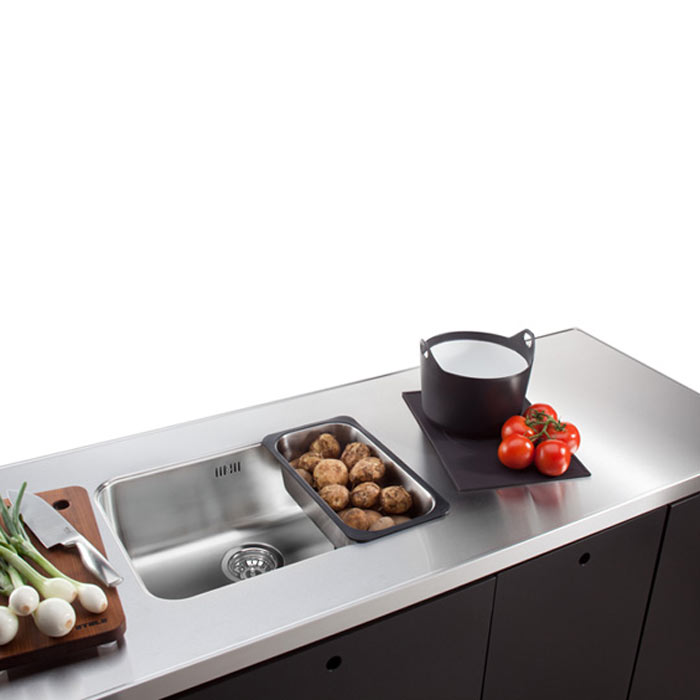 - Seven L, Teräksinen pöytälevy yhdellä pesualtaalla. Pöytälevyn pituus voidaan valita puolen senttimetrin välein. Tasainen tai nostettu reuna. Pinta on vakiona sileä. Sisustuskuvio voidaan tilata erikseen. Koripohjaventtiili voidaan tilata erikseen. Teräksinen takareuna voidaan toimittaa asennusta varten. Reuna on 58 mm korkea. Hanareikä voidaan tilata.
