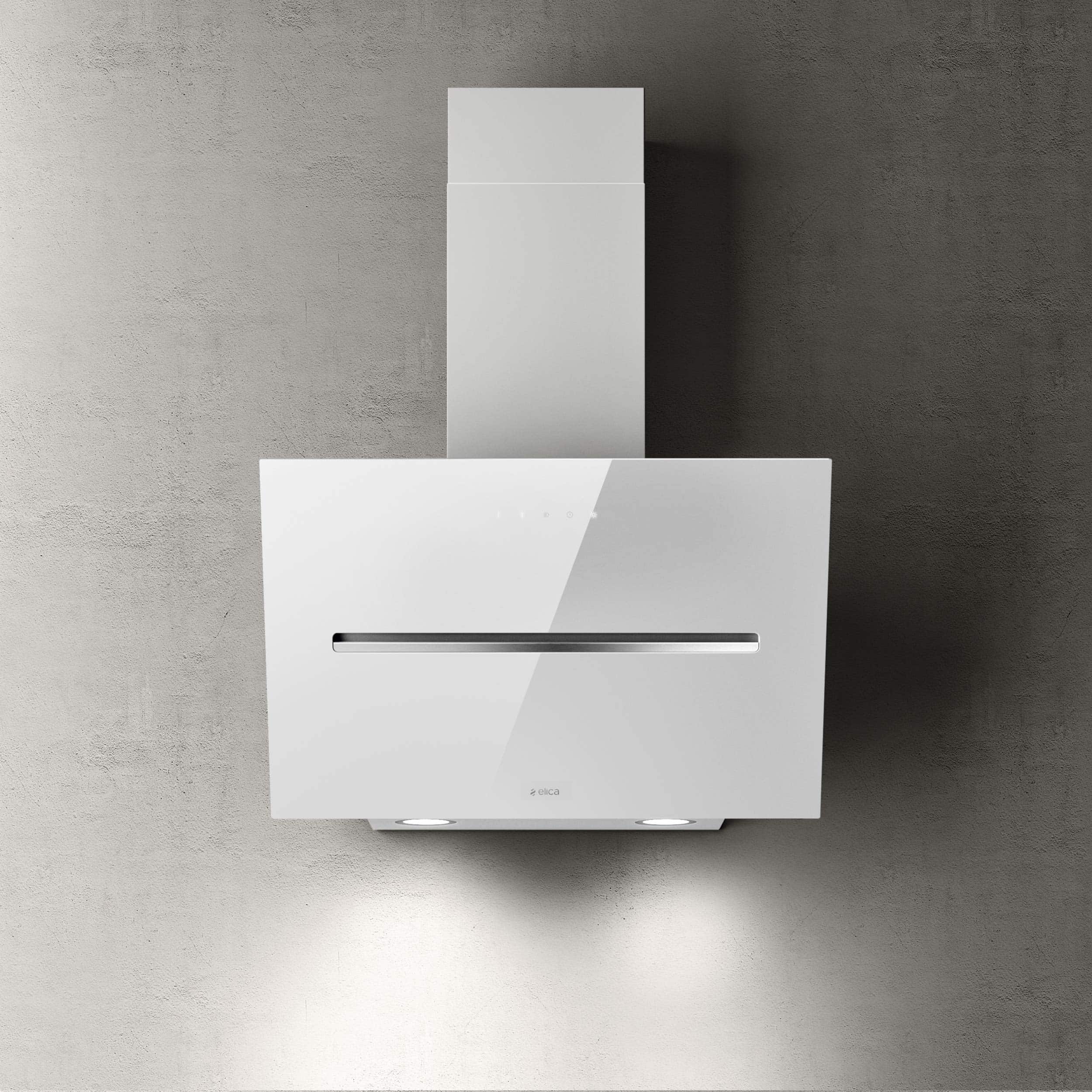 Seinälle asennettava viisto liesituuletin - Sisäänrakennetulla moottorilla - Valkoinen - Leveys 600 mm - Energialuokka A