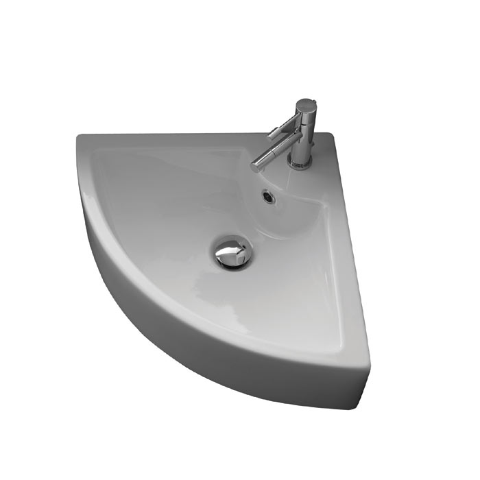 Kulmaan asennettava posliininen pesuallas. Asennetaan pöydälle tai seinälle. Ylivuotoaukolla. Yksi allas. HUOM: Ota yhteyttä asiakaspalveluumme niin lähetämme asennusaukon piirustukset. Koska materiaali on posliinia, saattavat mitat vaihdella. Siksi suosittelemme, että tarkistatte asennusaukon tarkat mitat vasta kun allas on fyysisesti paikalla.