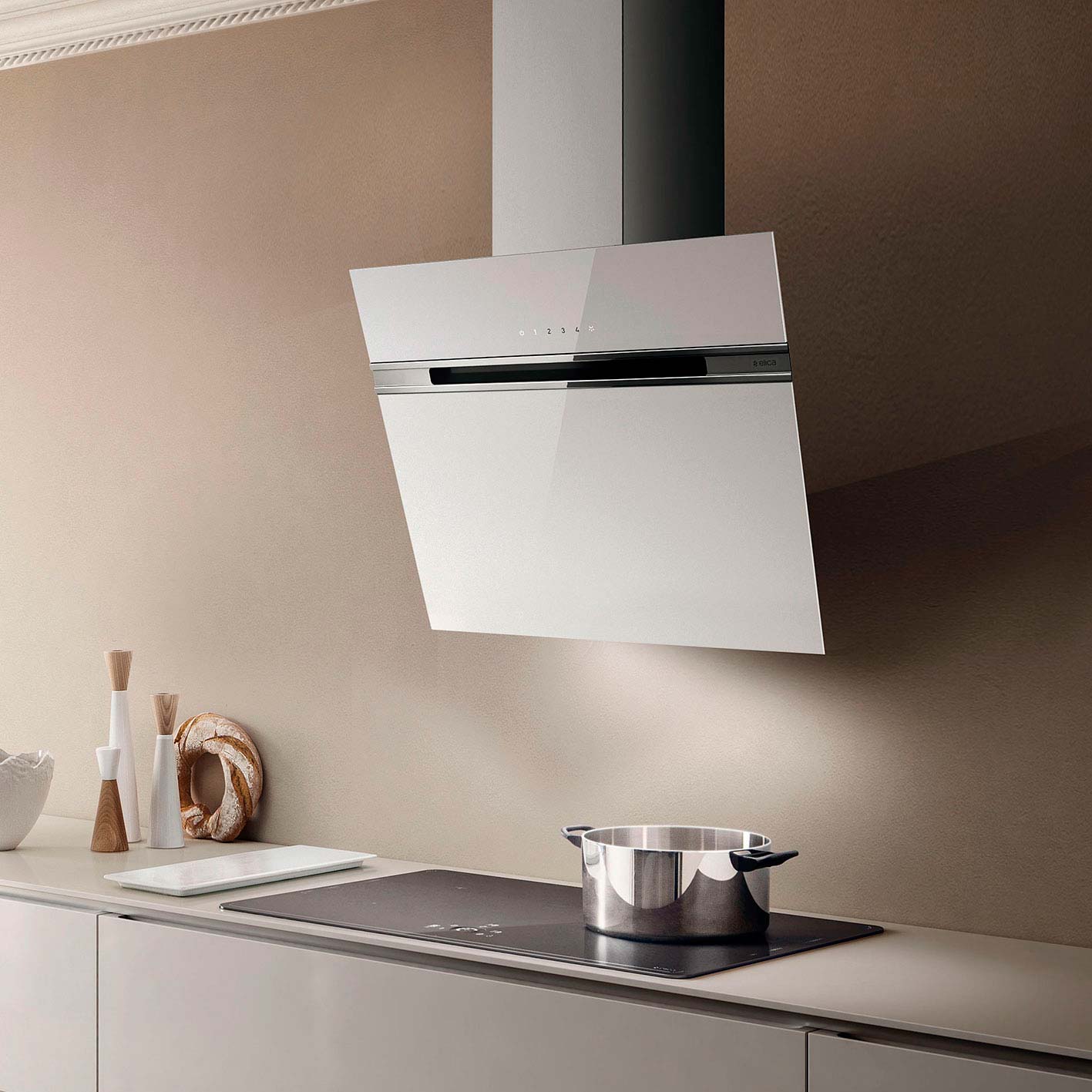Seinälle asennettava viisto liesituuletin - Sisäänrakennetulla moottorilla - Valkoinen - Leveys 600 mm