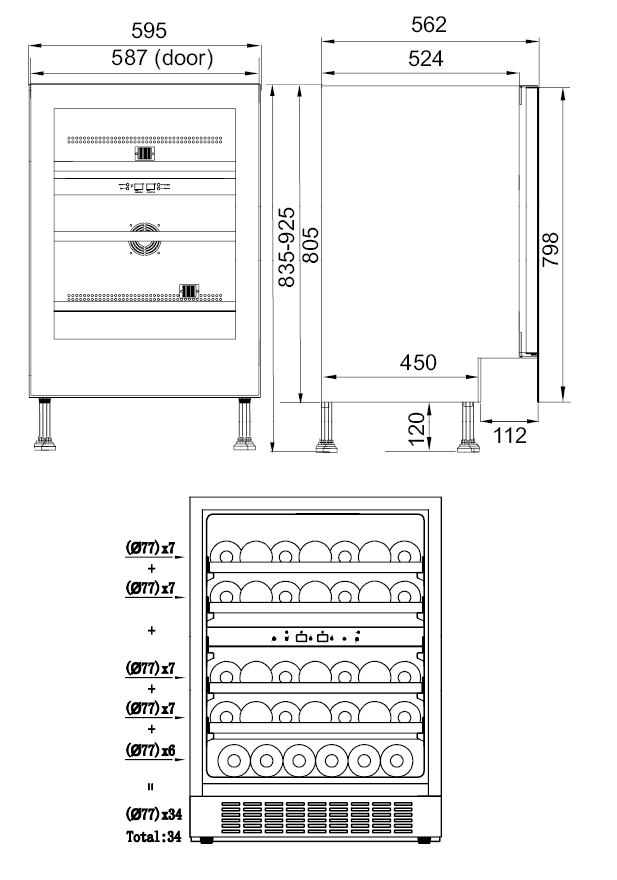 - Pullokapasiteetti Nettokapasiteetti max. 34 pulloa pcs